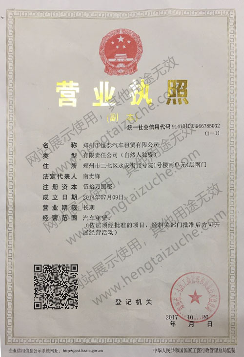 鄭州市恒泰汽車(chē)租賃有限公司